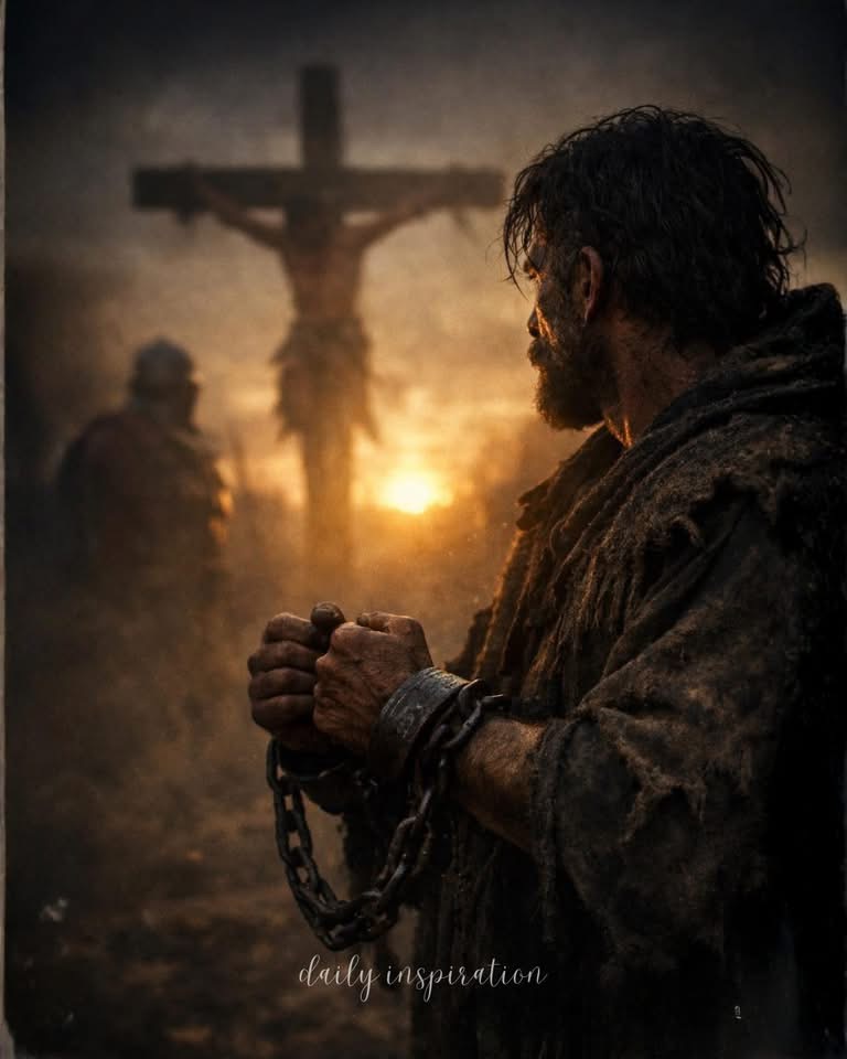 Barabbas tritt ins Sonnenlicht, weil Jesus in die Nägel tritt.