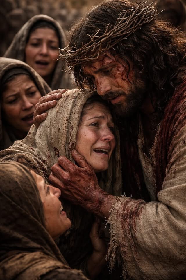 Obwohl er erschöpft und verwundet war, waren seine Augen voller Mitgefühl. Anstatt sich auf sein Leiden zu konzentrieren, sprach er zu den trauernden Frauen mit einer ernsten Warnung und einer Botschaft, die weit über diesen Moment hinausging.