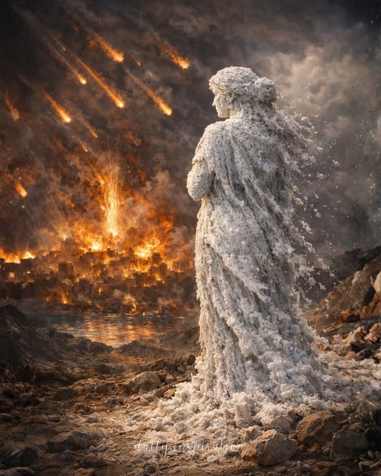 Wo einst eine Frau gestanden hatte, blieb nur eine stille Salzsäule zurück – immer noch der Vergangenheit zugewandt, die sie ihre Zukunft gekostet hatte.