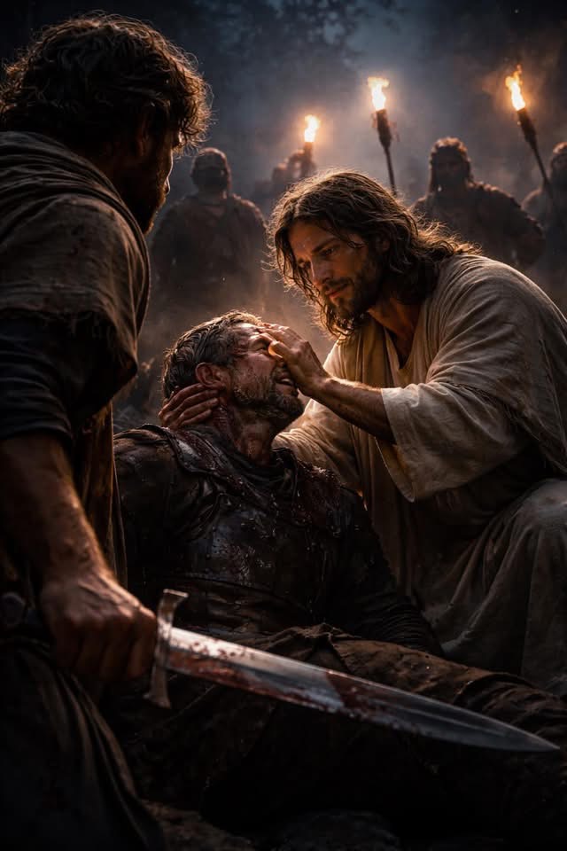 Jesus korrigiert die Handlung von Petrus, aber er vertraut weiterhin auf das Herz von Petrus. Derselbe Petrus, der das Schwert schwang, wird später bereitwillig seine Hände für Christus ausstrecken. Aber diese Verwandlung kommt nicht durch Verurteilung. Sie kommt durch Nähe, Geduld und Gnade.