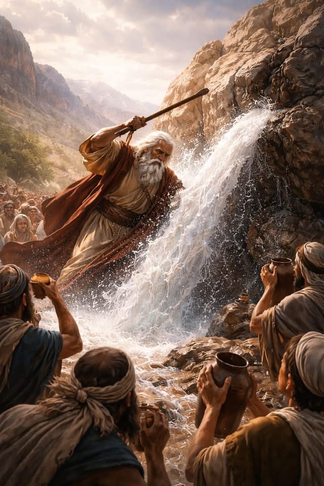 Moses tat, was Gott gesagt hatte. Wasser kam raus.