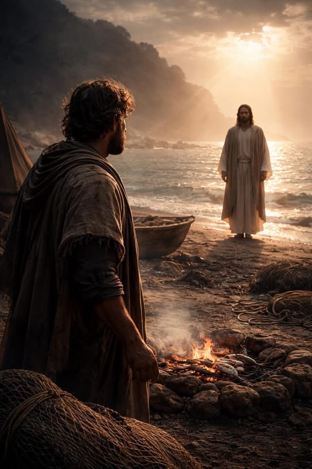 Dieses Detail ist absichtlich gewählt. Das einzige andere Mal, dass ein Holzkohlefeuer in den Evangelien vorkommt, ist während der Verleugnung des Petrus. Jesus stellt die Situation wieder her, aber nicht, um Petrus erneut zu traumatisieren. Er stellt sie wieder her, um ihre Bedeutung neu zu schreiben.