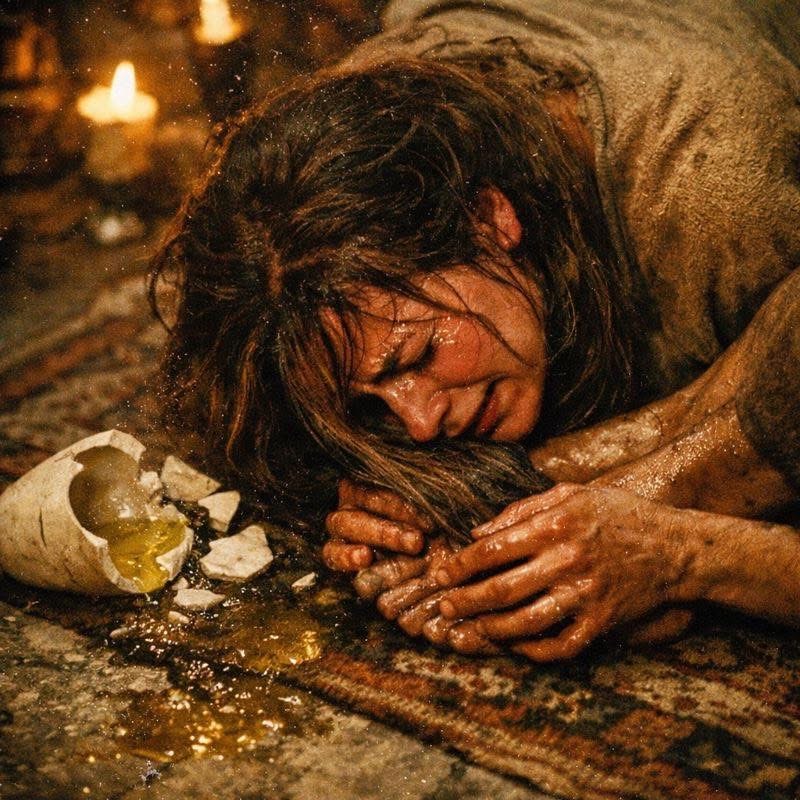 When she got there, she didn’t just pour the oil. She fell apart. She fell at his feet weeping, washing his feet with her tears. This wasn’t a polite cry; it was a gut-wrenching sob.