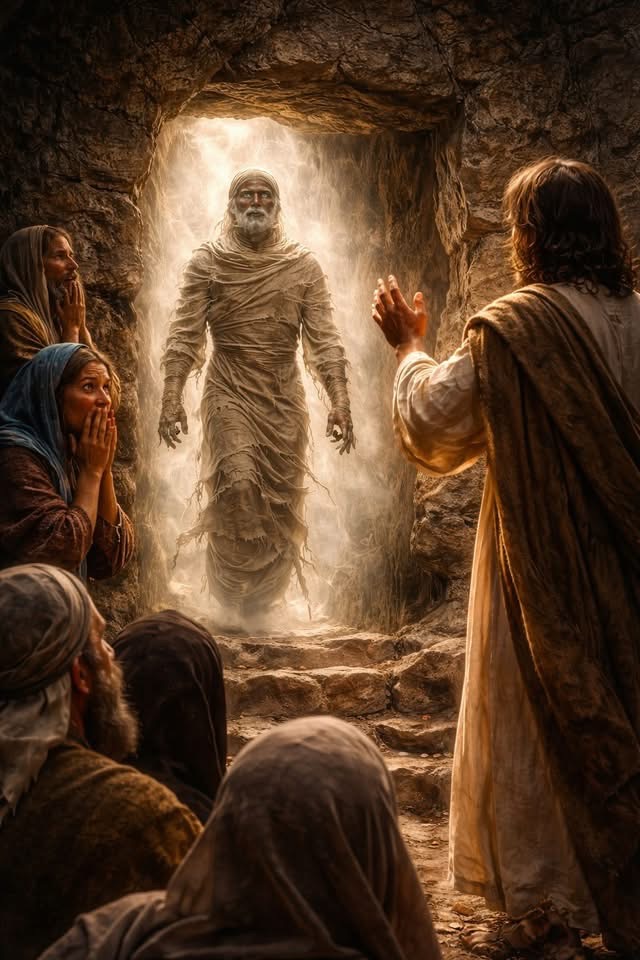 Und in einem Moment, der alle Zeugen verblüffte, trat Lazarus hervor, in Leichentücher gewickelt, lebendig. Der Schock verwandelte sich in Ehrfurcht, als die Menge nach Luft schnappte. Maria und Martha fielen vor Freude überwältigt auf die Knie. Das Leben war zurückgekehrt, wo nur Tod gewesen war.