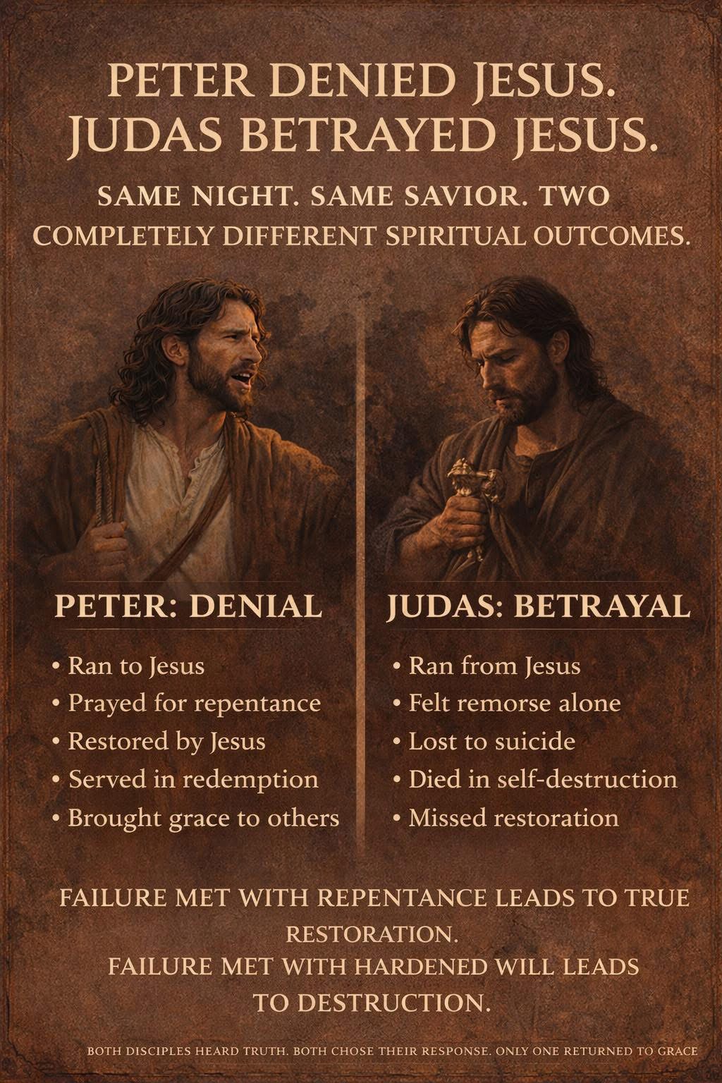 Petrus hat Jesus verleugnet. Judas hat Jesus verraten. Dieselbe Nacht. Derselbe Erlöser. Zwei total unterschiedliche spirituelle Ergebnisse.